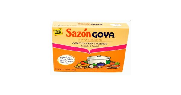 Goya Sazon Culantro y Achiote is a popular Latin spice blend from Goya Foods that adds vibrant color and savory flavor to dishes, featuring saffron (azafrán) for a distinct taste, along with garlic, cumin, and annatto for a golden hue, making it perfect for rice, beans, stews, meats, and seafood, offering an “authentic touch” and “foolproof” way to enhance meals.